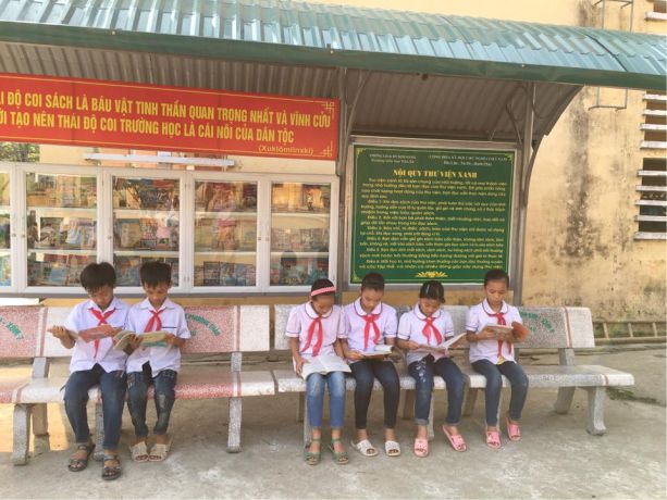 Học sinh đọc sách trong giờ ra chơi ở thư viện xanh trường tiểu học Văn xá, truyền thống ham học hỏi